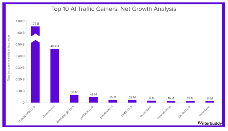 Here Are The Most Used AI Tools Of 2023 – Artificial intelligence was all the rage in 2023. From writing assistants to generative media tools, hundreds of millions — scratch that, billions — of users have incorporated artificial intelligence into their workflows in unprecedented ways…..the top 50 AI tools generated 24.3 billion visits between September 2022 and August 2023, with traffic increasing by an average of 236.3 million visits per month.”, Slash Gear, December 23, 2023