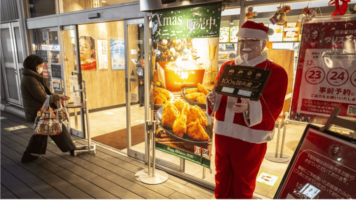 How KFC Became Japan’s Hallmark Christmas FoodAh, Christmas food. Maybe you go for a large, typical spread of roast this and roast that with various vegetables and sauces, rolls, and apple pie. Or maybe you live in Japan and queue up outside of a KFC waiting for a deluxe Christmas meal pack of crispy fried chicken like your artery-clogging parents before you. Hold on, you say: “Folks eat KFC for Christmas in Japan?” Yes, indeed. Feel free to peruse a Japanese-language KFC Christmas menu online; it doesn’t matter if you don’t read Japanese because everything has a picture.”, Grunge, December 20, 2023